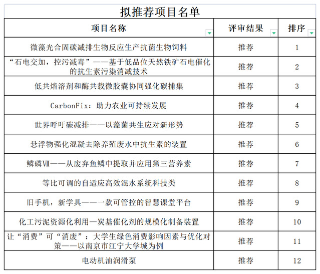 根据《关于组织参加第十六届全国大学生节能减排社会实践与科技竞赛的通知》的总体安排,教务处开展了本年度项目申报和遴选工作。经项目自愿申报和节能减排领域校内外专家评审,拟推荐以下项目参加第十六届全国大学生节能减排社会实践与科技竞赛,现将结果予以公示。
